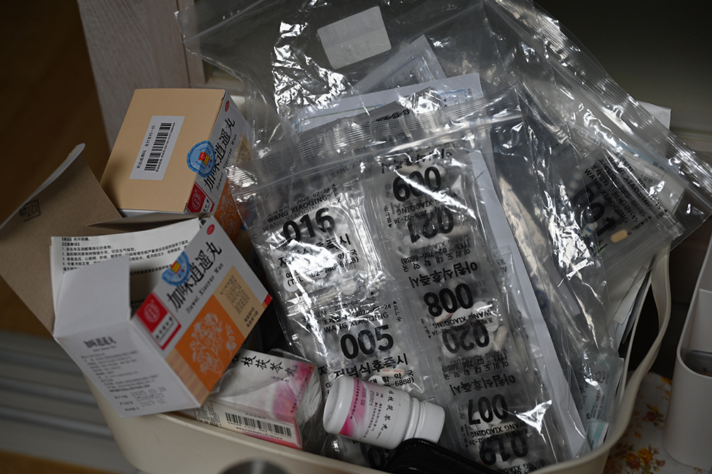 소완청(가명)씨의 침대 옆 탁자에는 약 봉지들이 쌓여 있었다.