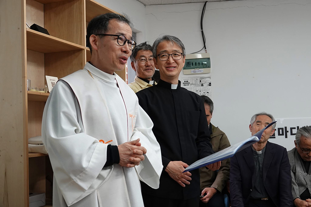 가난한 이들을 위한 친교와 환대의 공간 '일우공동체' 축복식이 9일 예수회 한국관구장 황정연 신부 주례로 열리고 있다. 예수회인권연대연구센터 제공