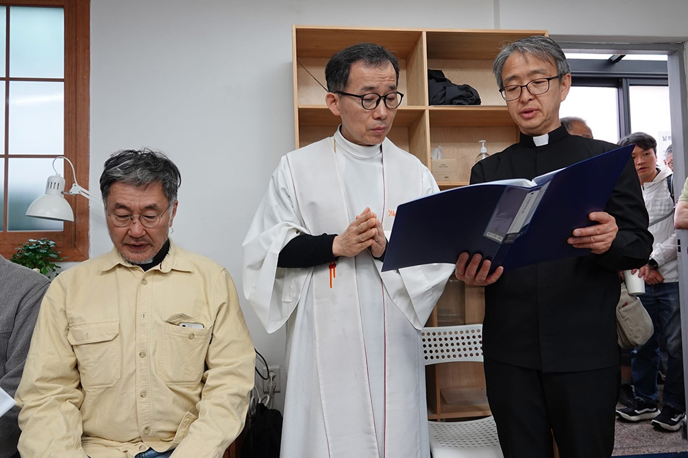 가난한 이들을 위한 친교와 환대의 공간 ‘일우공동체’ 축복식이 9일 예수회 한국관구장 황정연 신부 주례로 열리고 있다. 예수회인권연대연구센터 제공