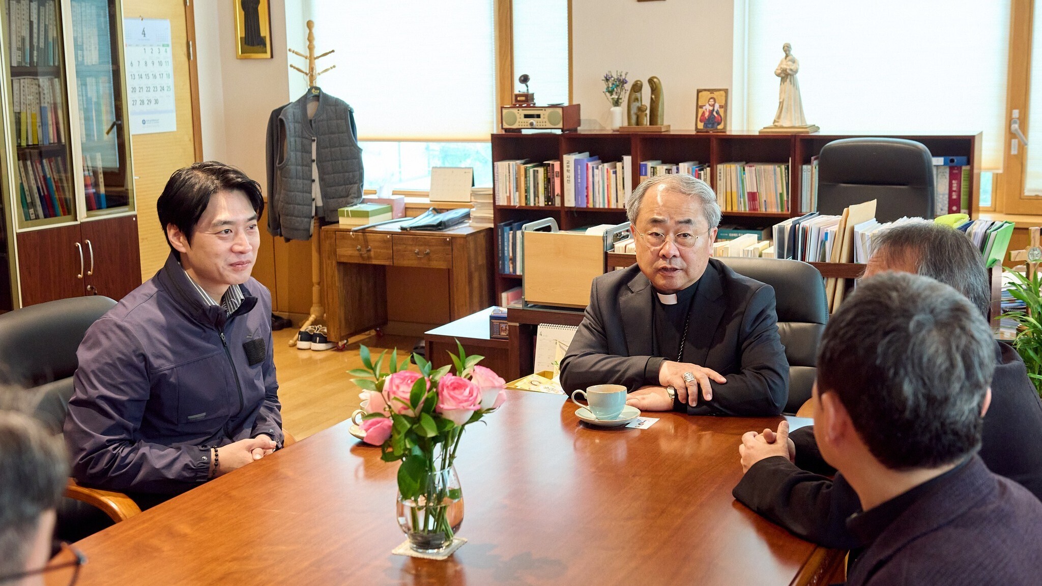 이날 환담에는 의정부교구 총대리 이은형 신부, 사무처장 김효준 신부, 홍보국장 왕태언 신부 등이 배석했다.